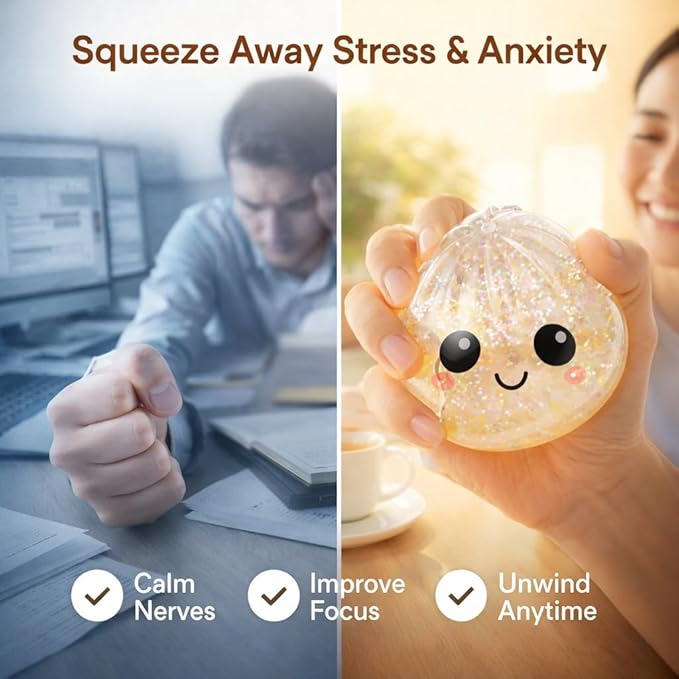 - 【Ultimate Stress Ball】This Glitter Dumpling stress ball delivers deeply satisfying squeezes, helping reduce tension, anxiety, and fidgeting instantly