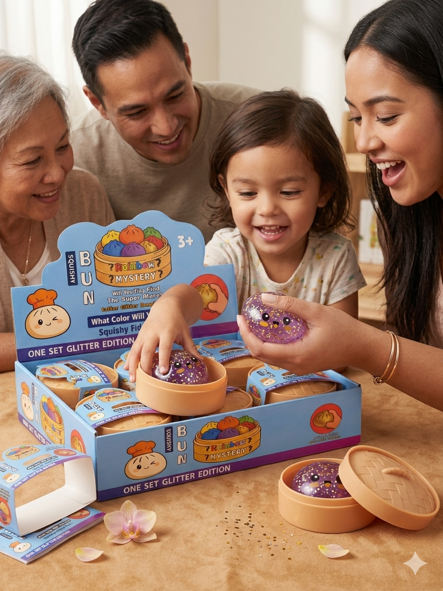 - 【Glitter Dumpling Squishy Blind Box】The Glitter Dumpling squishy toy comes in a mystery steamer box, adding an element of surprise every time! Unbox the fun and discover a squishy dumpling that looks just like the real thing, with a delightful glitter twist
